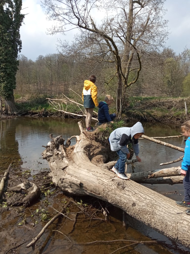 Enchantés par les voix des élèves, contents d’effectuer une sortie en école, ce bel après-midi ensoleillé nous a permis de découvrir la rivière Flanlive de Habay-La-Vieille, le château de la Trapperie et les alentours.