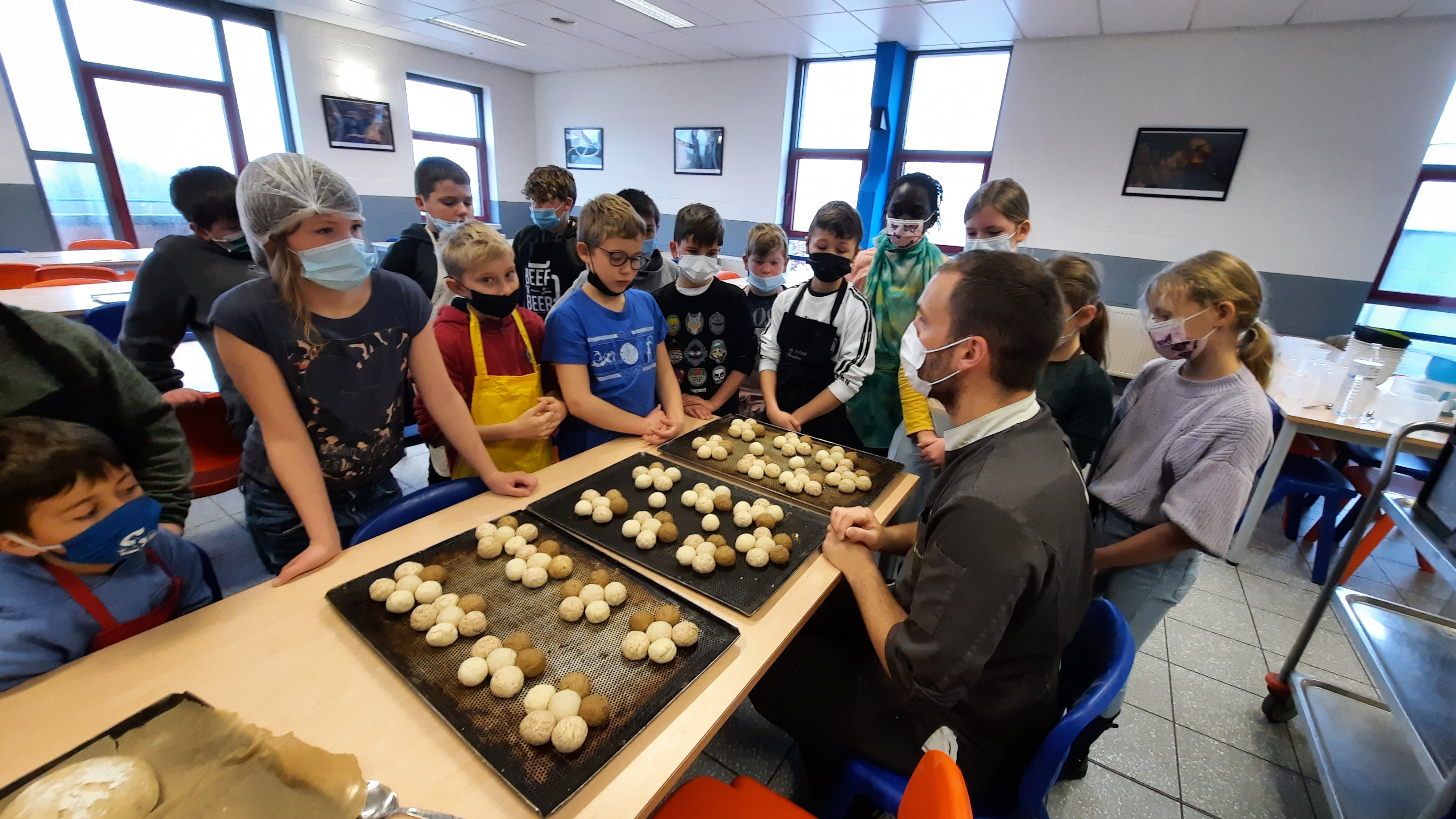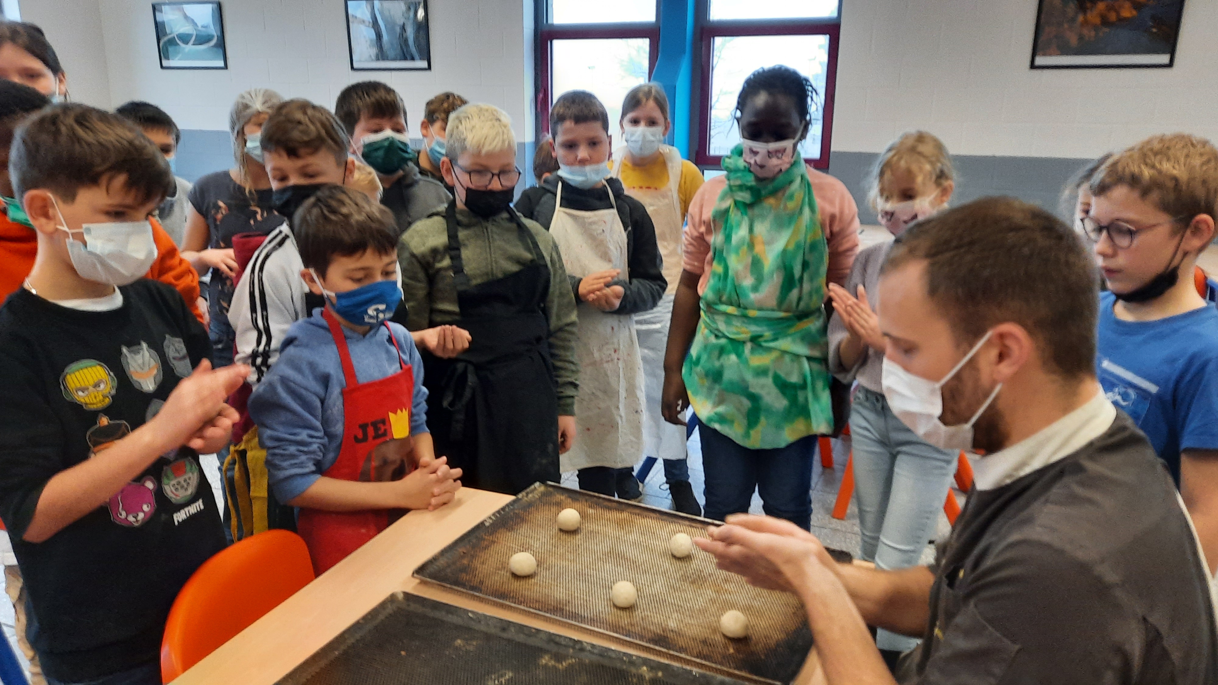 Les enfants ont expérimenté la réalisation de petits pains cuits sous forme de couronne.