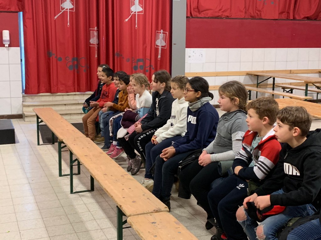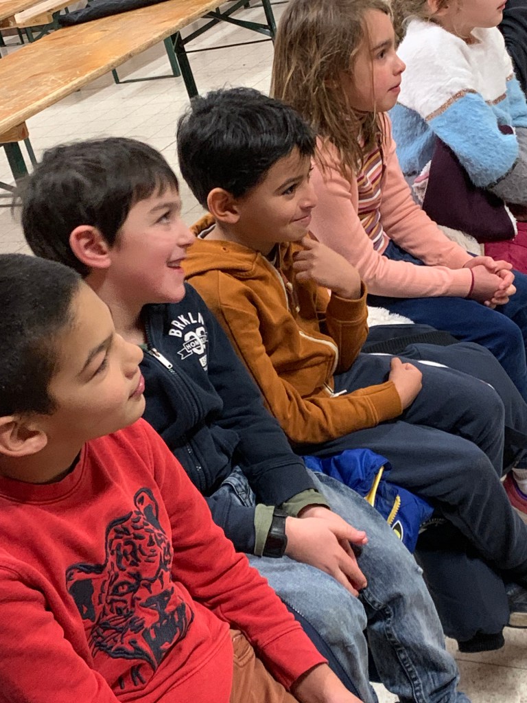 La classe de P1, 2, 3 et 4 ont assisté à des saynètes présentées par les élèves de 2e secondaire option « Art de la Parole ».