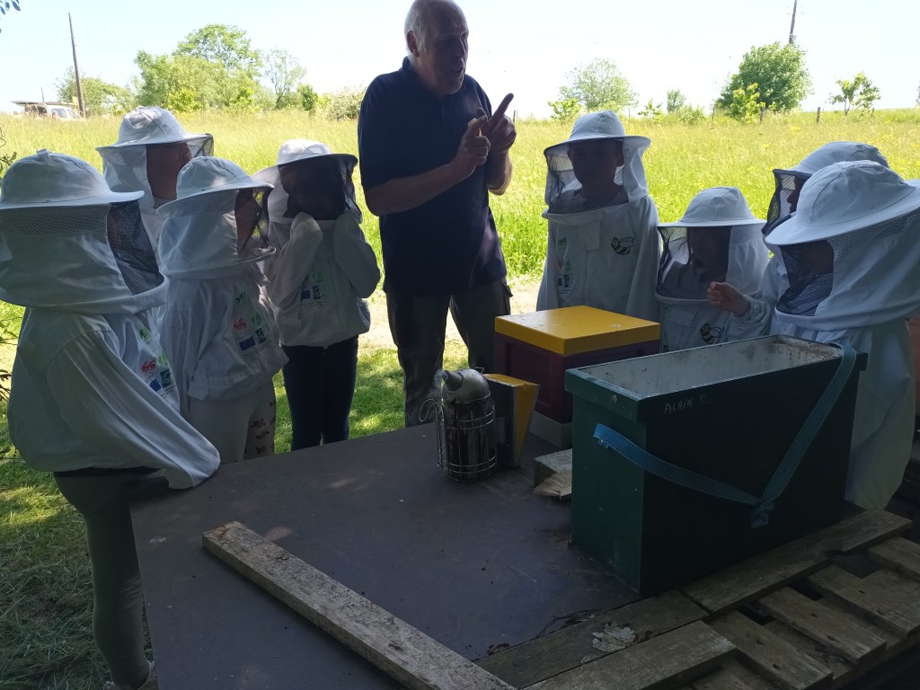 Dans le cadre de notre projet en collaboration avec le Parc naturel de Martelange, ce mardi 30 mai, nous avons visité le rucher de monsieur Poncé, un apiculteur de Hachy.