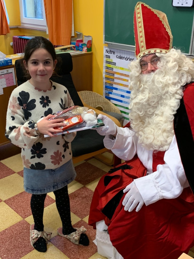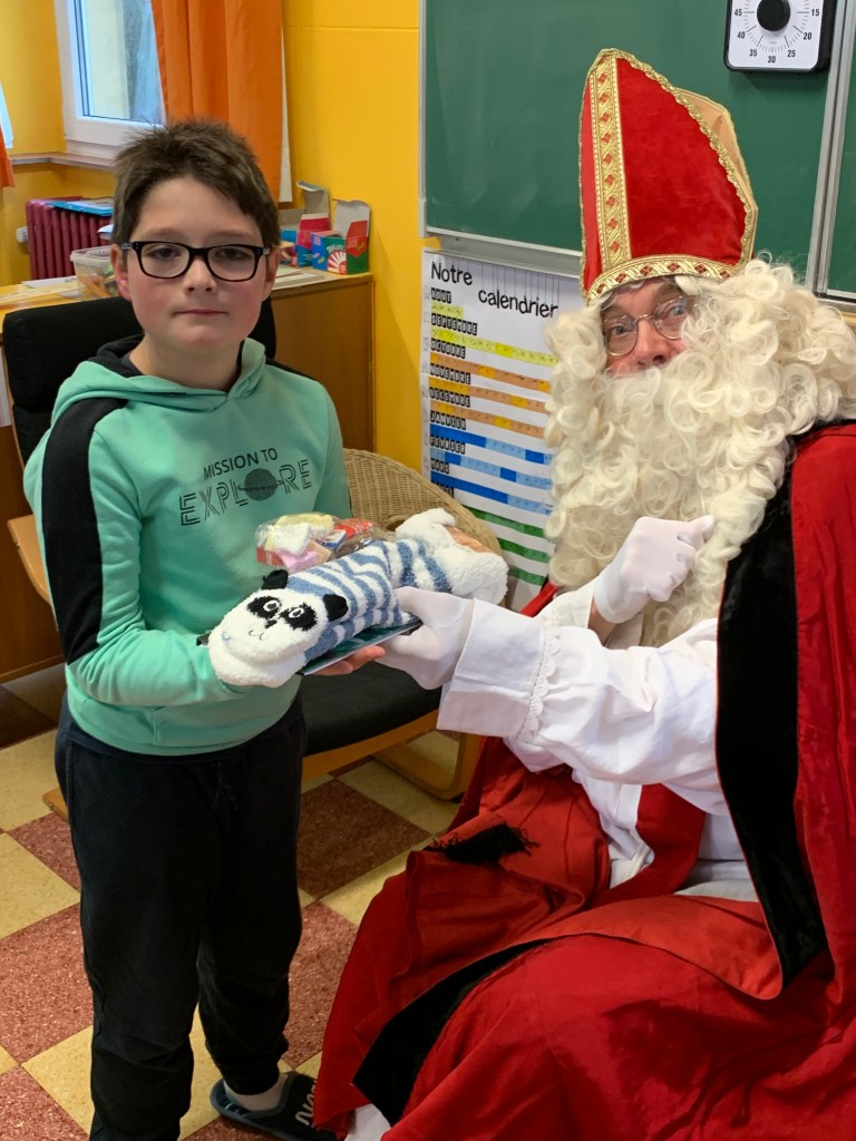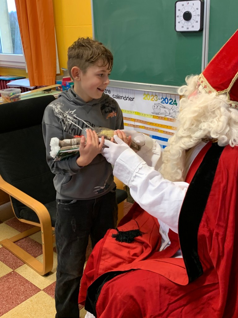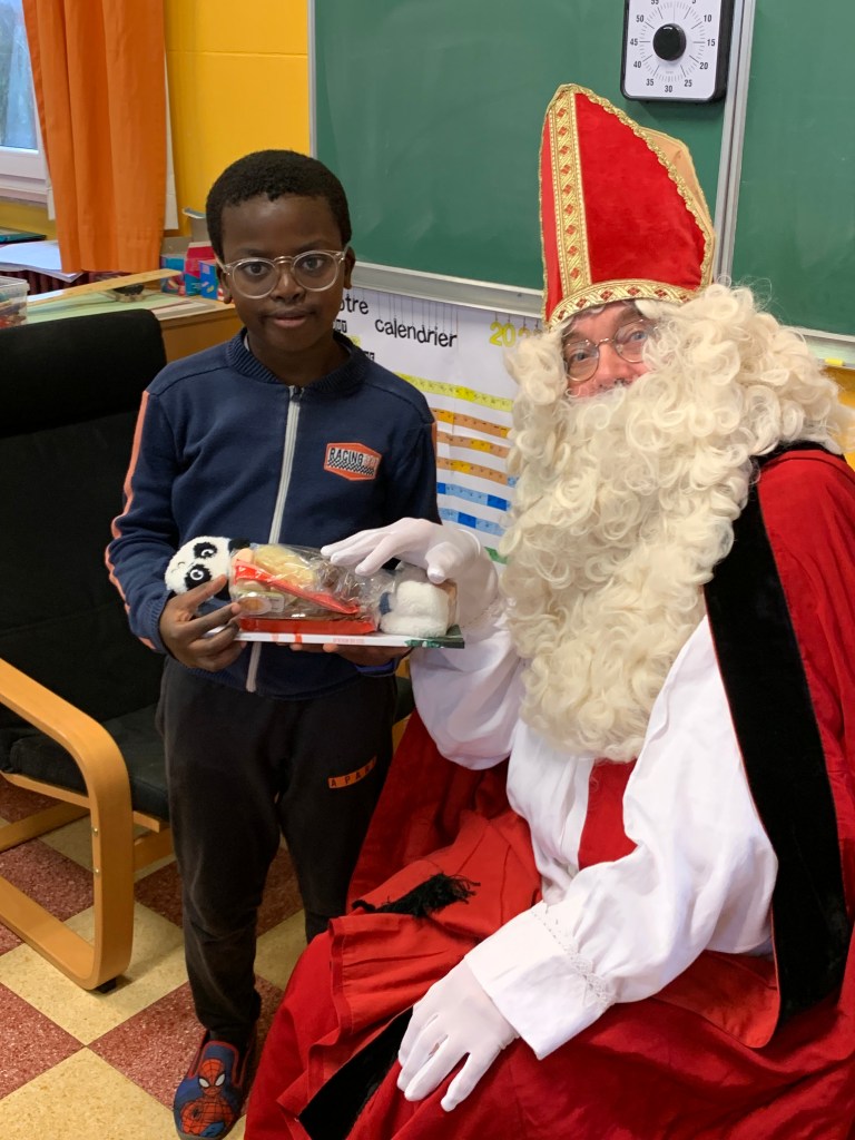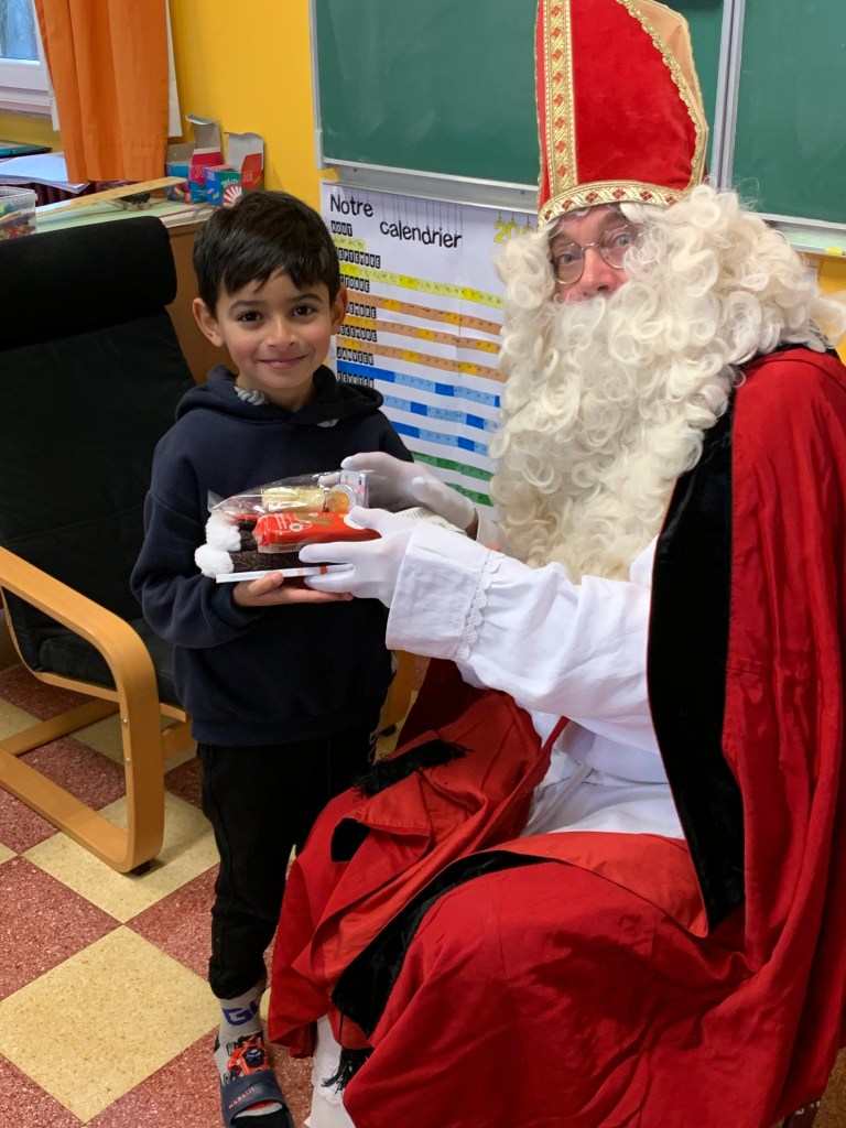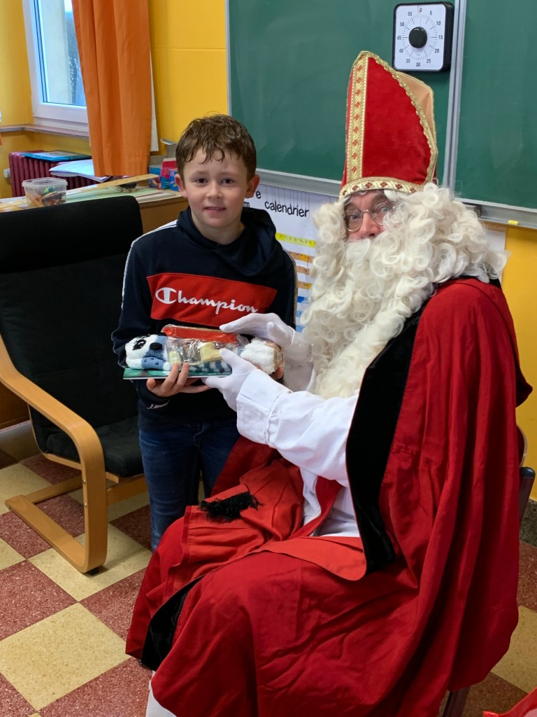 P1-P2-P3-P4 : Saint Nicolas Après avoir chanté un chant de st Nicolas en Néerlandais, les enfants reçoivent leurs cadeaux. Merci St Nicolas !!! Similaire