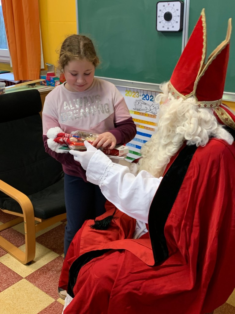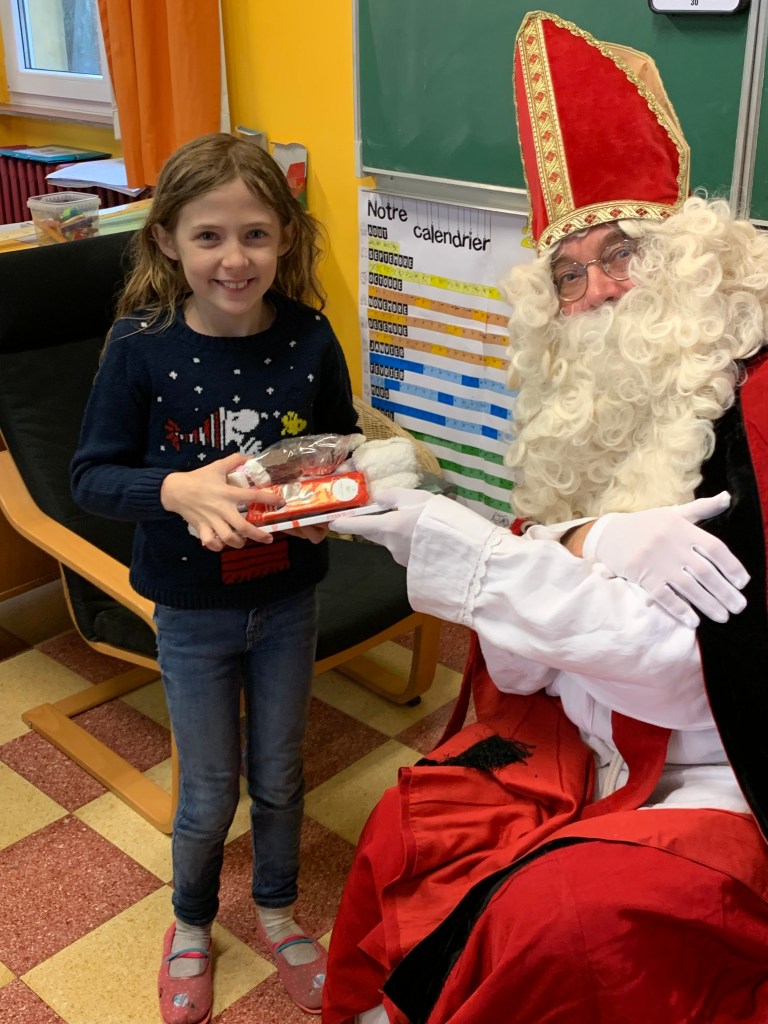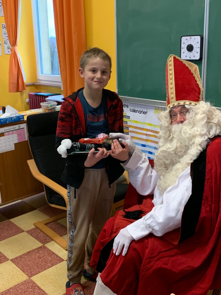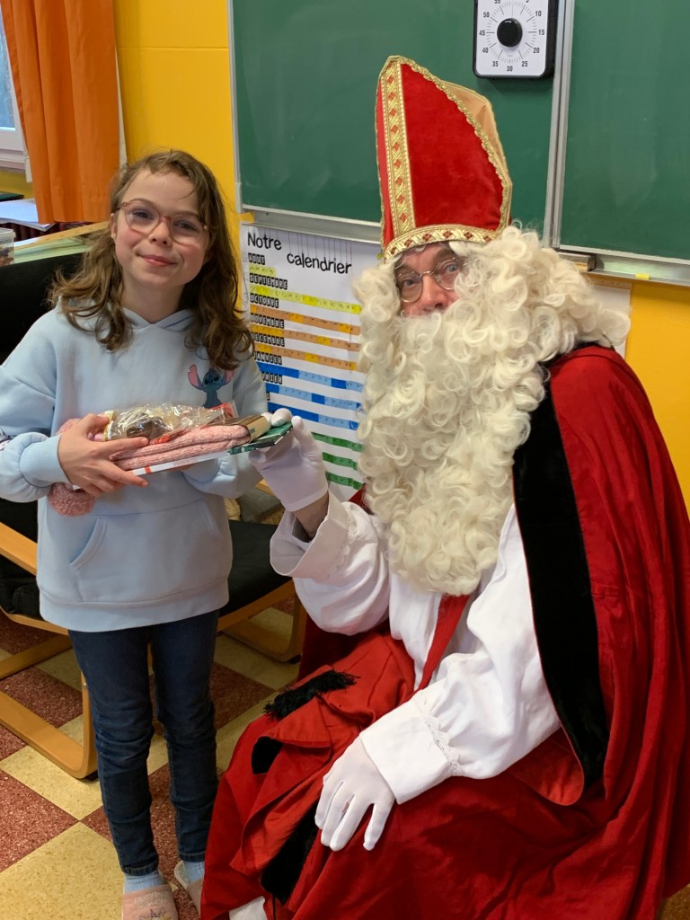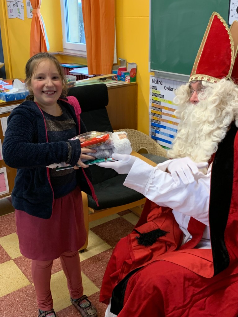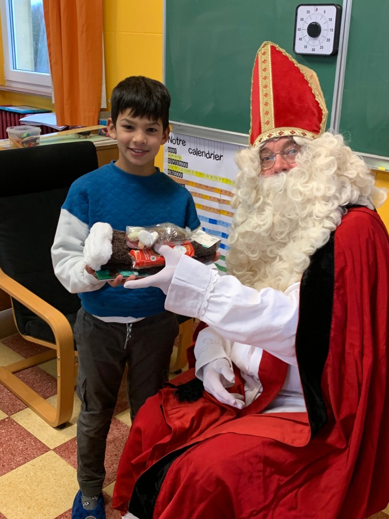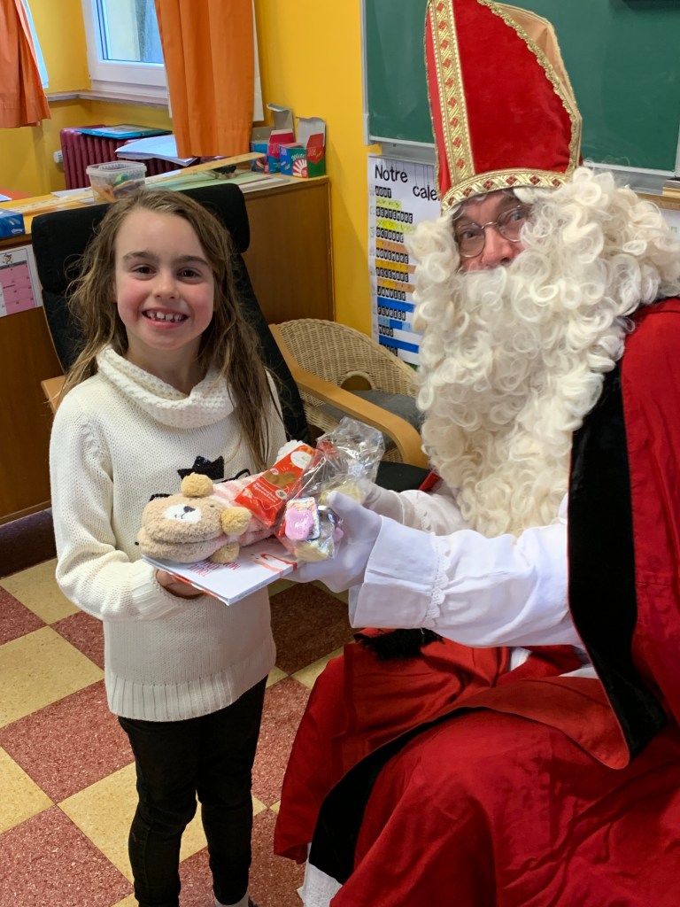 P1-P2-P3-P4 : Saint Nicolas Après avoir chanté un chant de st Nicolas en Néerlandais, les enfants reçoivent leurs cadeaux. Merci St Nicolas !!! Similaire