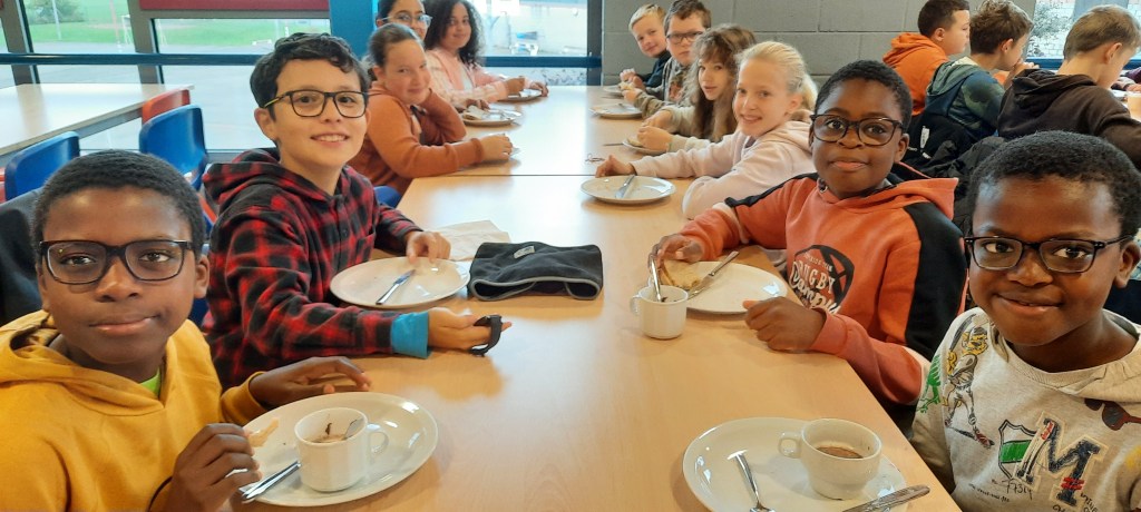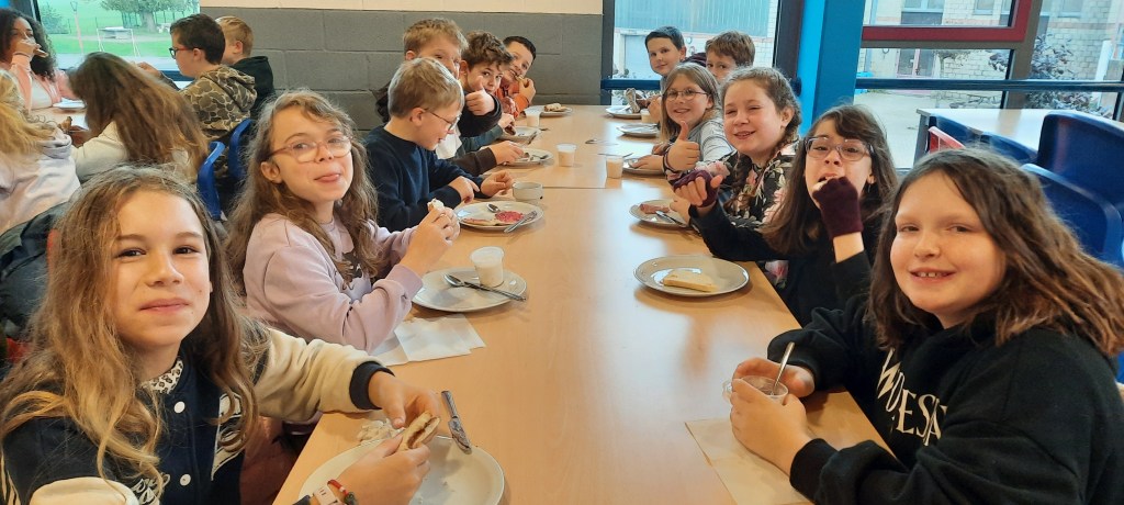 Ce mercredi 16 octobre, nous avons bénéficié d’un petit déjeuner équitable offert par la commune d’Habay. 🍞🥛🧃🍎