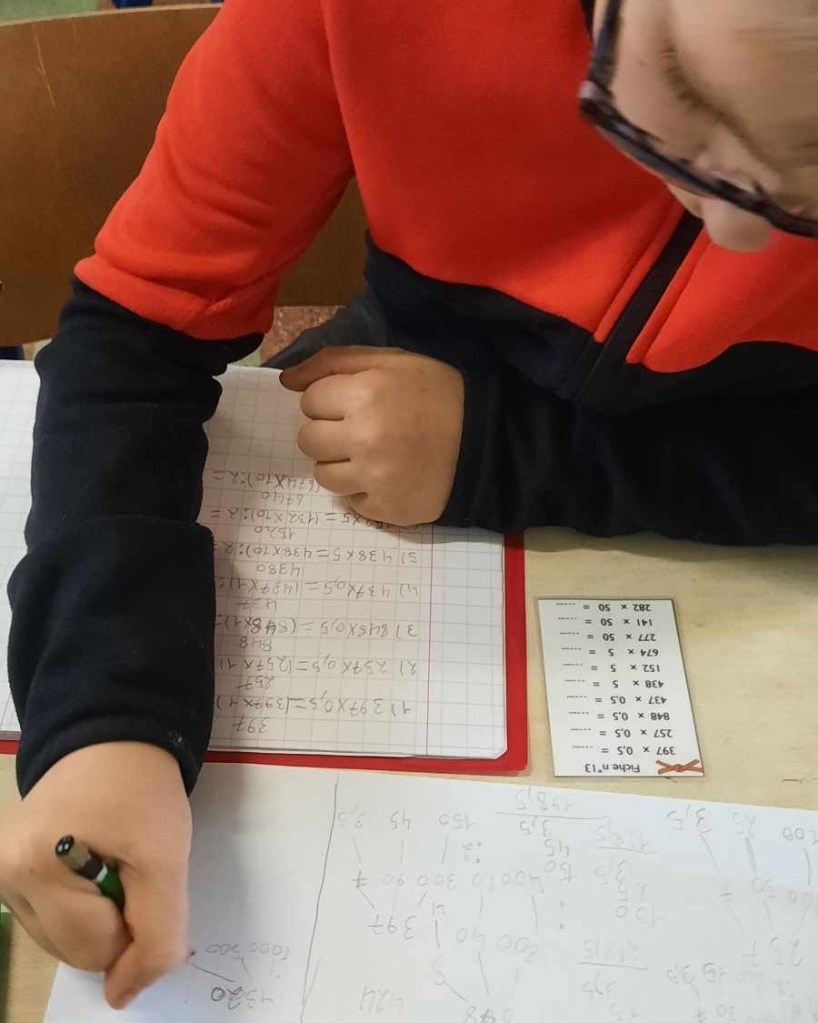 Chaque jour, nous nous entrainons à effectuer un procédé de calcul mental grâce à une fiche autocorrective. Dix calculs à effectuer et à corriger en autonomie, ce qui permet de dégager du temps à l’enseignante pour aider les élèves ayant quelques difficultés. ![]()