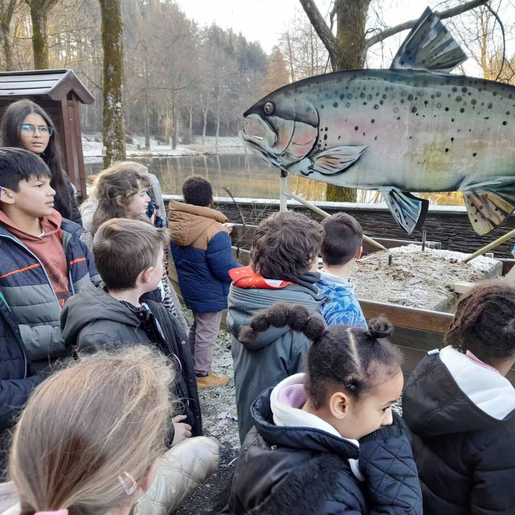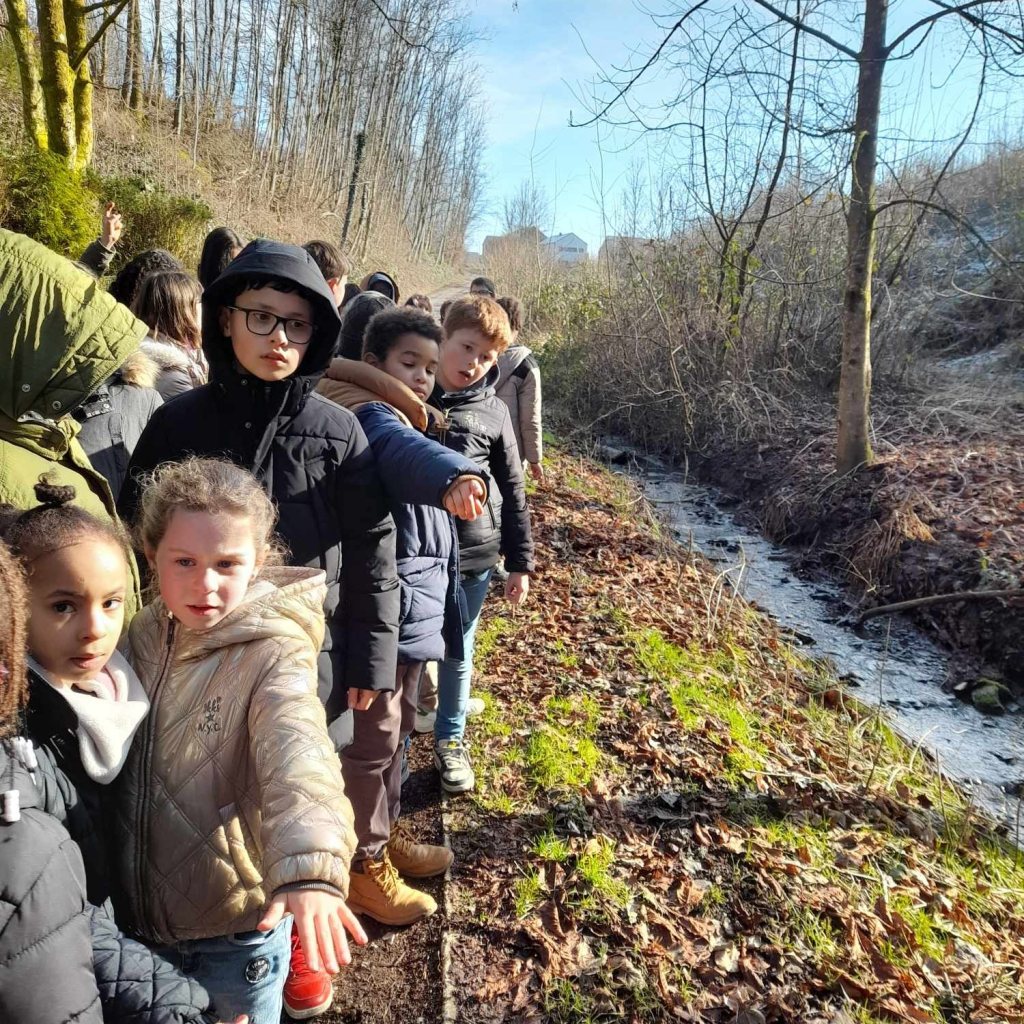 Nous avons observé le cours d’eau en utilisant le vocabulaire adéquat : source, amont, aval, lit, rive gauche, rive droite, affluent, confluent, courant.