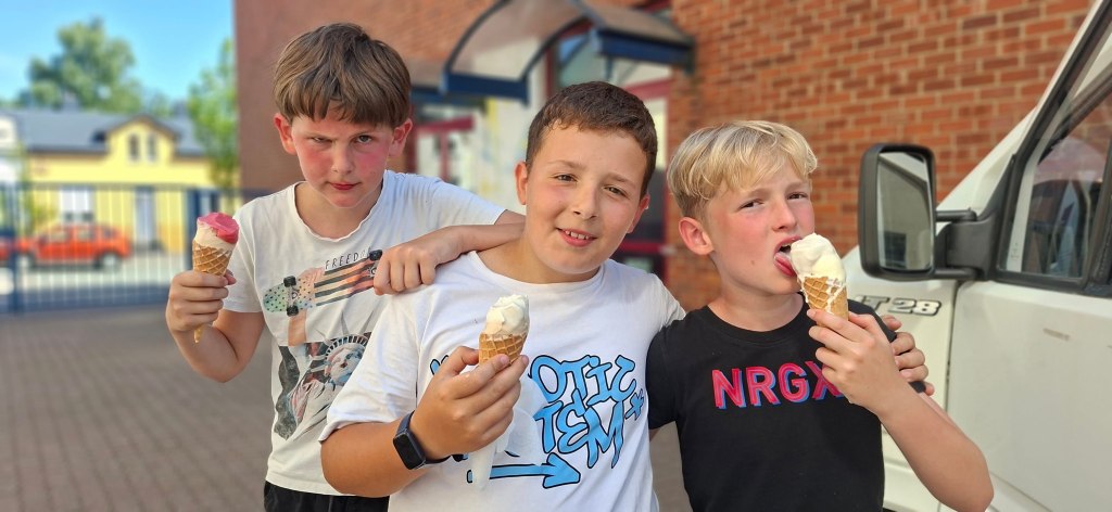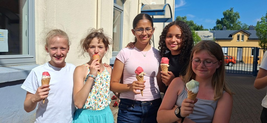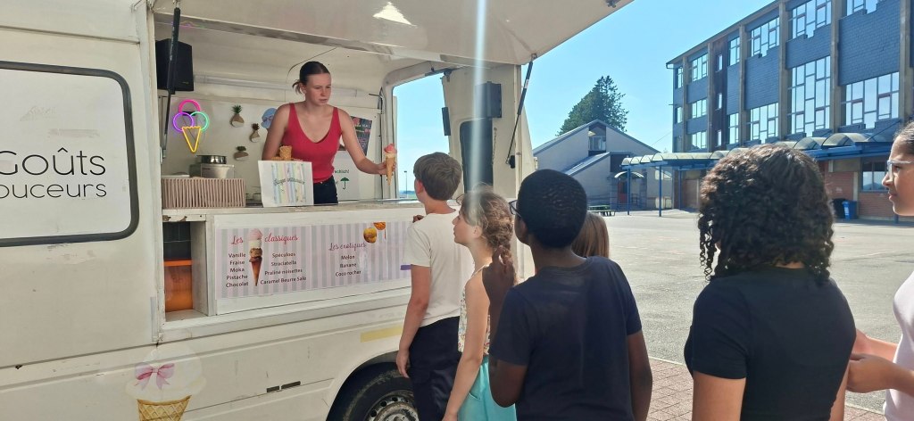 En fin d’après-midi, le marchand de glace les a gâtés. 🍦🤩 Madame Murielle, madame Marie et madame Audrey en ont profité aussi, évidemment! 🤭