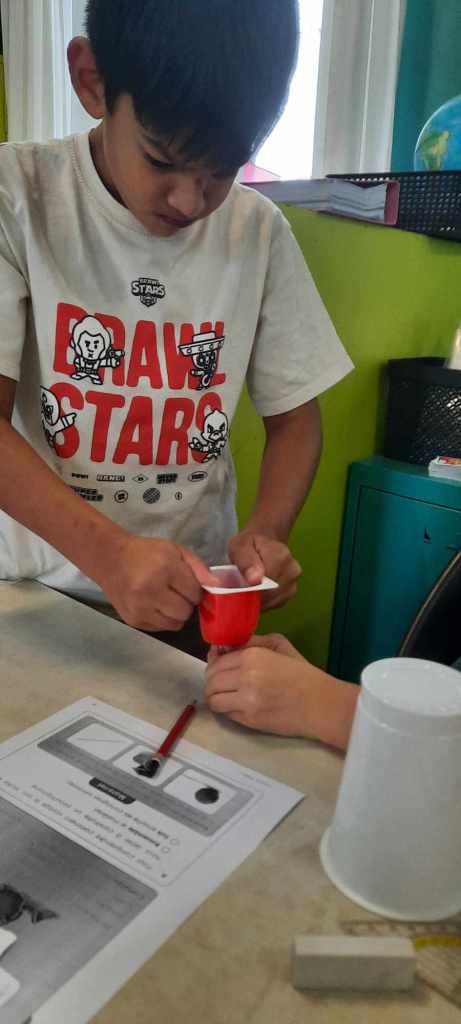 Chacun a dessiné sa maison et son sapin, puis nous avons regroupé les réalisations individuelles pour créer une œuvre collective.